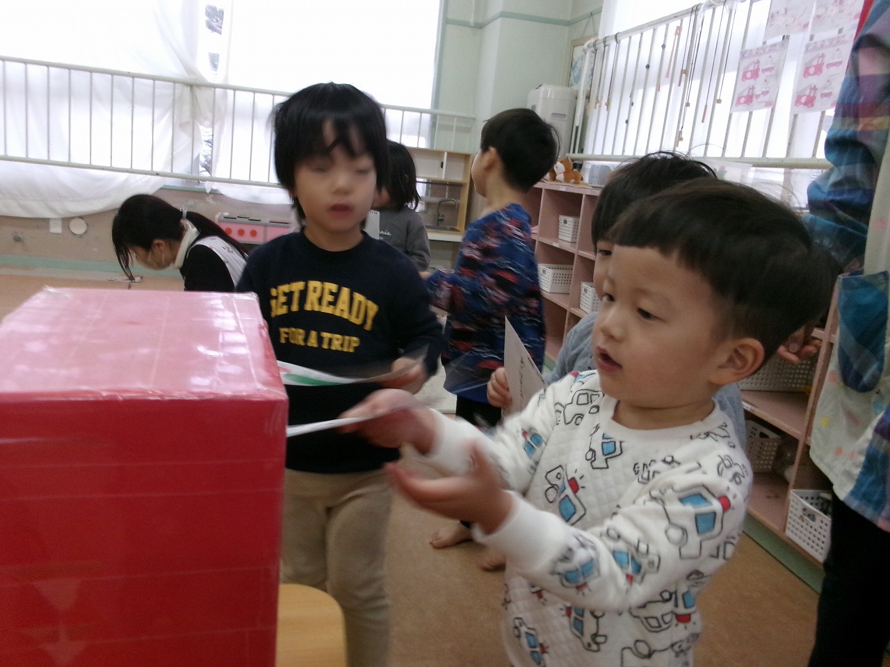 ピンク・しろ・みどり、と自分のおせんべいの色を教え合ったり、かじった後の形を見せ合ったり、おやつの時間がより楽しくなりました!