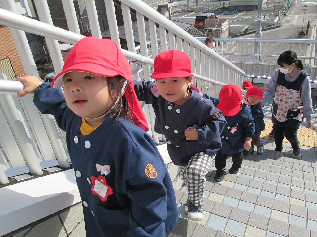 梅組さんのお兄さんおねさんたちと手を繋いで神社までお散歩にいきました。