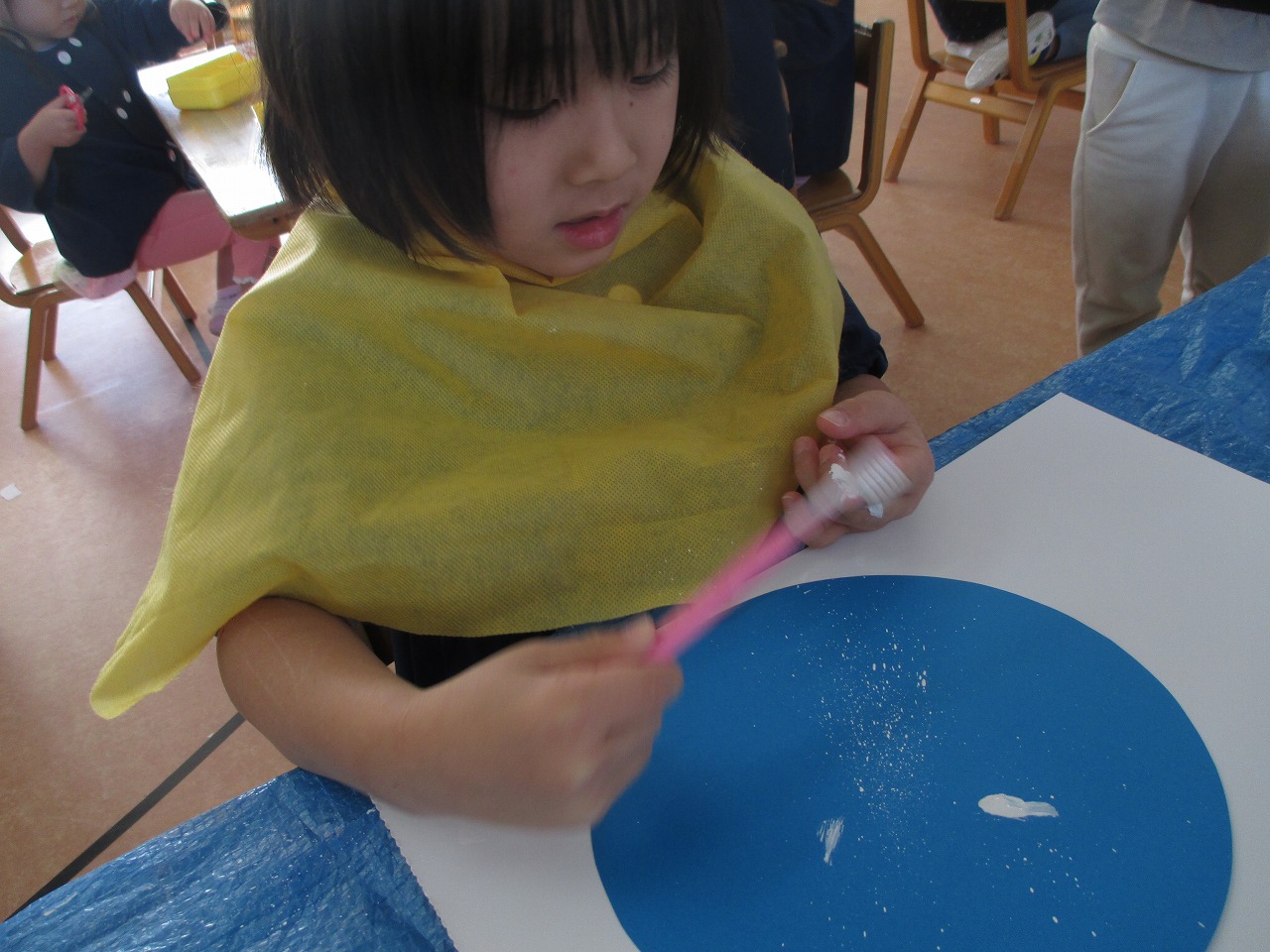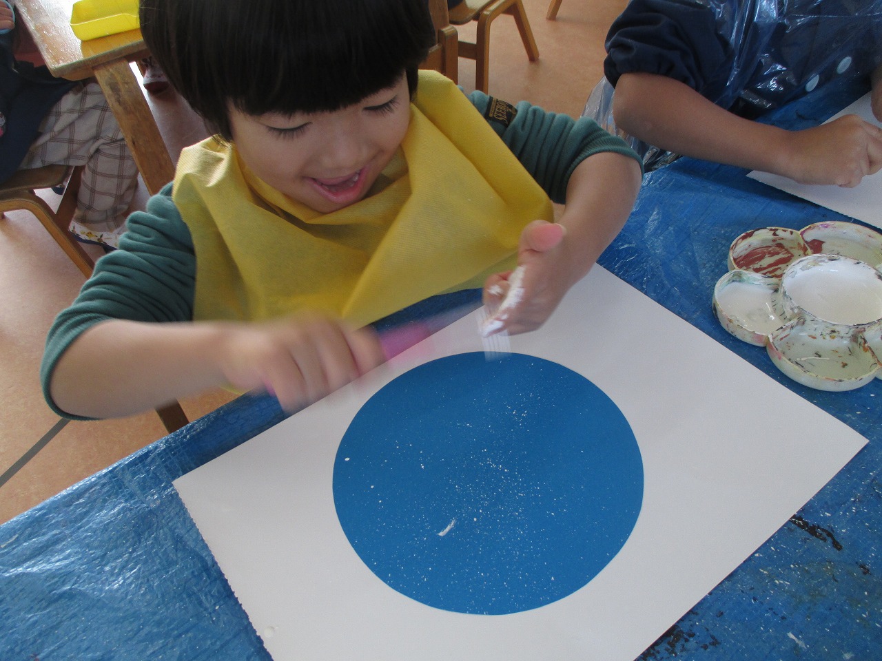 ボンドと塩、絵の具を使ってソルトペイントをしました。