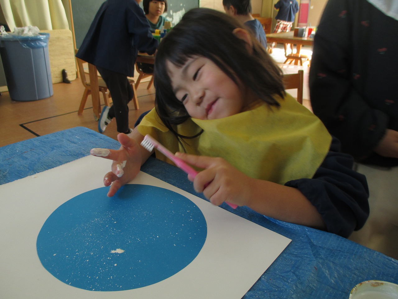 ぐしゃっと握ってみたり、かき混ぜてみたり、豪快に遊ぶ姿が見られました(^^)